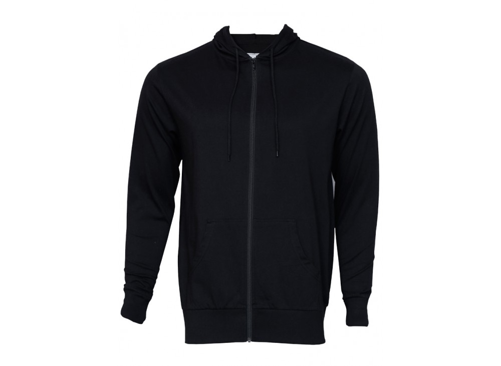 100% Combed Cotton Jersey , 5.30 oz / 180 GSM , Hood with DTM draw cord , 1x1 spandex rib at cuff and bottom , Front pouch (kangaroo) pocket , YKK Nylon Zipper