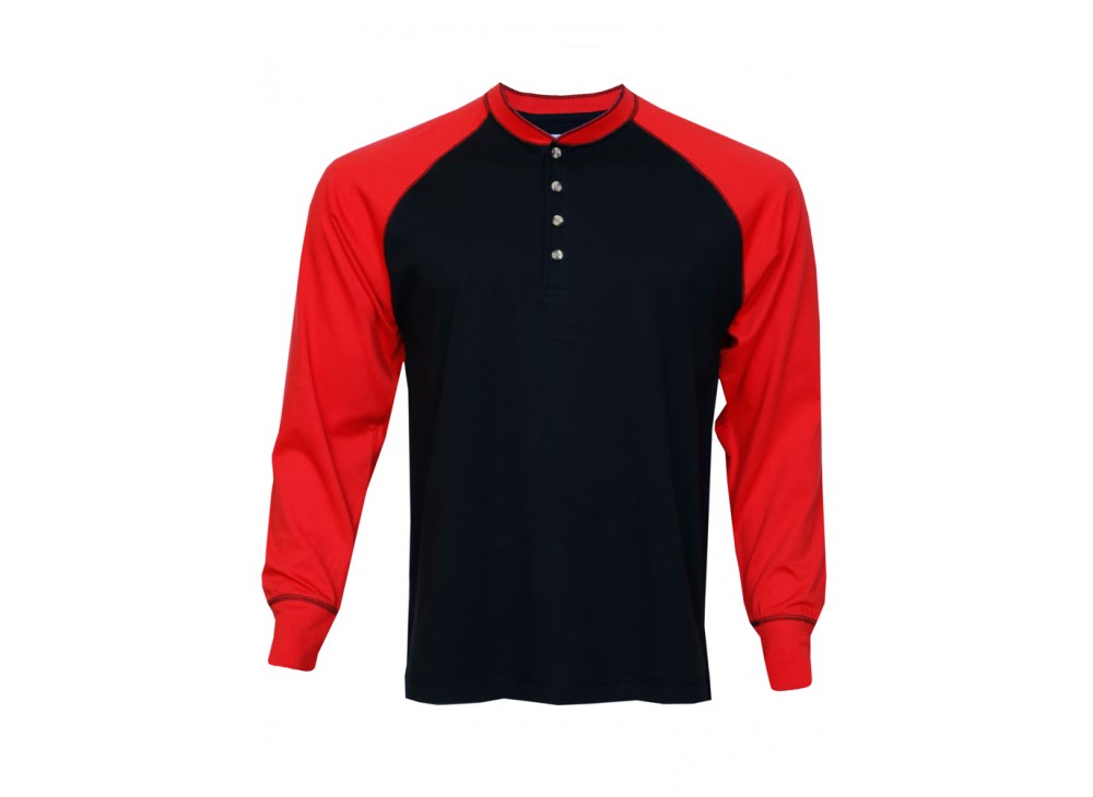 100% Combed Cotton Jersey , 5.30 oz / 180 GSM , 1x1 spandex rib at neck and cuff , Two needle hemed at bottom. , Four button placket , Twill tape side vent