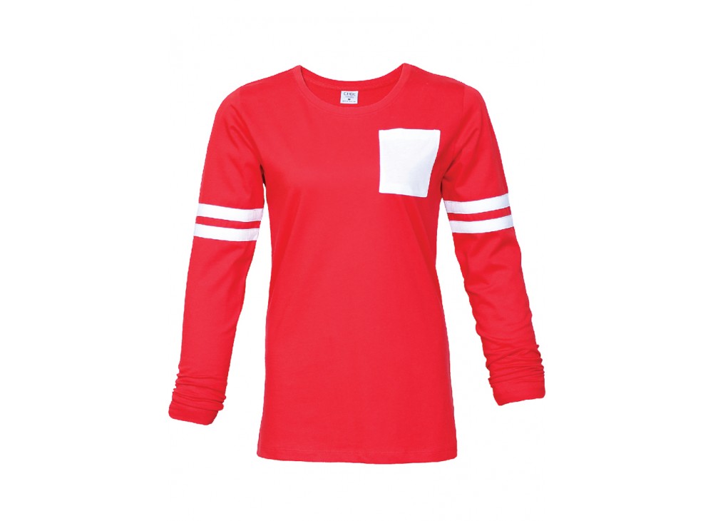 Women Long Sleeve with Front Pocket Tee and Two White Stripe at Sleeve